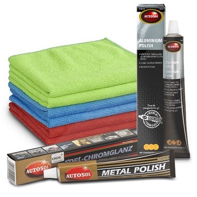 | Produktbezeichnung | Autosol 75 ml Edel Chromglanz + 75 ml Aluminium Politur + 6x Mikrofasertuch |