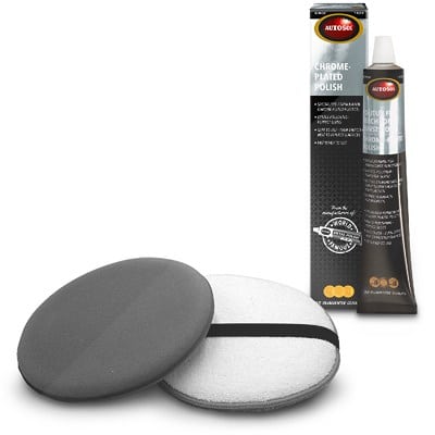 Autosol 75 ml Politur für verchromte Kunststoffe + Hand Polierpad Ø 20 cm Set – Ihr Experte für strahlenden Glanz auf Chrom und hochglänzenden Oberflächen