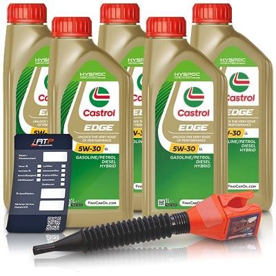 Castrol EDGE 5W-30 LL: Maximale Leistung und Schutz für Ihren Motor – im praktischen 5x 1L Set inklusive Ölwechsel-Zubehör