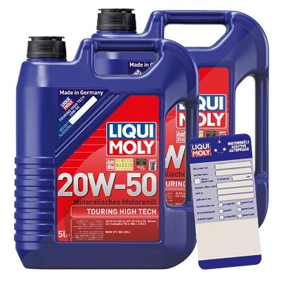 Liqui Moly 10 L Touring High Tech 20W-50 + Ölwechsel-Anhänger [Hersteller-Nr. 1255]: Maximale Leistung und Schutz für anspruchsvolle Motoren