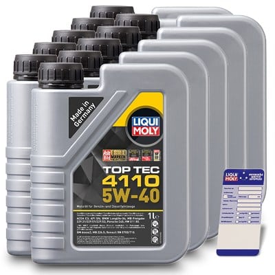Optimale Motorpflege für anspruchsvolle Fahrzeuge: Liqui Moly 10x 1 L Top Tec 4110 5W-40 + Ölwechsel-Anhänger [Hersteller-Nr. 21478]