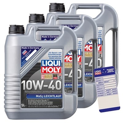 | Lieferumfang | 1x 15L Kanister Liqui Moly MoS2 Leichtlauf 10W-40, 1x Ölwechsel-Anhänger |
