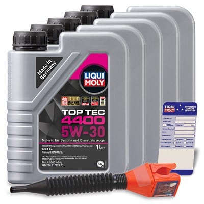 Dieses Bundle aus fünf Litern Liqui Moly Top Tec 4400 5W-30 Hochleistungs-Motorenöl, ergänzt durch einen praktischen Ölwechsel-Anhänger und einen präzisen Einfülltrichter, ist die ideale Lösung für anspruchsvolle Autofahrer, die den bestmöglichen Schutz und die Langlebigkeit des Motors ihres Fahrzeugs sicherstellen möchten. Speziell entwickelt für moderne PKW mit Diesel- und Benzinmotoren, die über Abgasnachbehandlungssysteme wie Partikelfilter (DPF) und geregelte Drei-Wege-Katalysatoren (TC) verfügen, minimiert dieses Set den Aufwand und maximiert die Effizienz Ihres nächsten Ölwechsels.