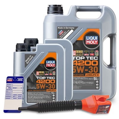 Das Liqui Moly 7 L Top Tec 4200 5W-30 Set bietet Ihnen alles, was Sie für einen sauberen und effektiven Ölwechsel benötigen: