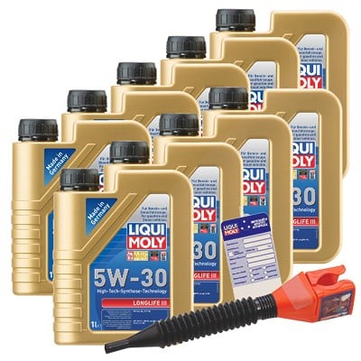 FAQ – Häufig gestellte Fragen zu Liqui Moly 9x 1 L Longlife III 5W-30+ Ölw.-Anhänger+ Trichter [Hersteller-Nr. 10803477]