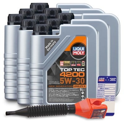 FAQ – Häufig gestellte Fragen zu Liqui Moly 9x 1 L Top Tec 4200 5W-30+ Ölw.-Anhänger+Trichter [Hersteller-Nr. 10802799]
