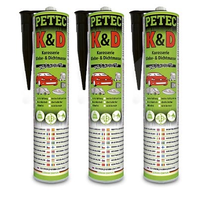 Zuverlässige Abdichtung und Verklebung für Ihre Karosserie: Petec 3x 310ml K&D Karosserie Klebe- u. Dichtmasse