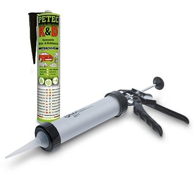 Die Petec Alu-Kartuschenpresse in Verbindung mit der schwarzen Karosserie Klebe-/Dichtmasse ist ein unverzichtbares Werkzeug für alle, die Wert auf professionelle Ergebnisse legen. Sie eignet sich hervorragend für das Verkleben und Abdichten von Karosserieteilen, das Montieren von Anbauteilen am Fahrzeug, das Abdichten von Nähten an Wohnmobilen und Anhängern sowie für Reparaturarbeiten im Bootsbau. Die Verarbeitung ist denkbar einfach: Schneiden Sie die Spitze der Kartusche im gewünschten Winkel an und führen Sie die Kartusche in die Presse ein. Durch gleichmäßiges Drücken des Griffhebels wird die Klebe-/Dichtmasse präzise dosiert. Achten Sie auf saubere und trockene Oberflächen für optimale Haftung. Überschüssiges Material kann mit einem geeigneten Spachtel oder Lösungsmittel (vor der Hautbildung) entfernt werden. Die vollständige Aushärtung erfolgt durch Luftfeuchtigkeit.
