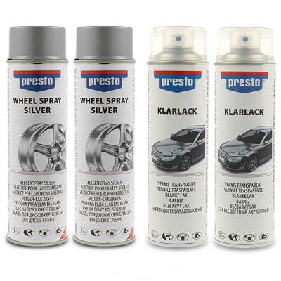 Presto 2x 500ml Universal Felgenspray Silber + 2x 500 ml Klarlack Glänzend: Die ultimative Lösung für professionell veredelte Felgen