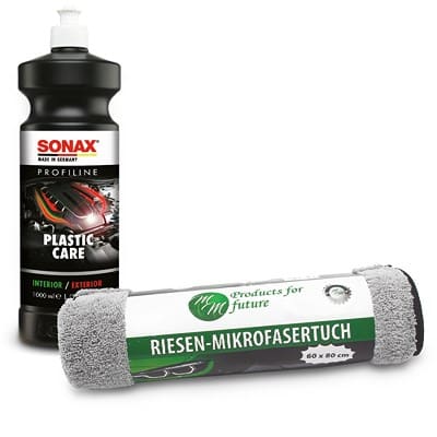 Die Vorteile des Sonax 1L Profiline PlasticCare + Riesen-Mikrofasertuch Sets: