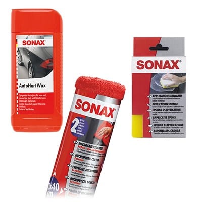 | Inhalt des Sets | 1x Sonax AutoHartWax+, 1x Auftragsschwamm, 2x Mikrotücher |