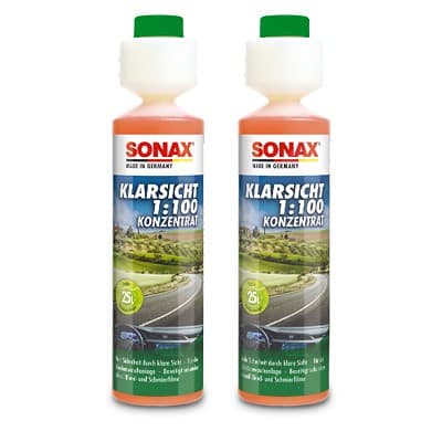 Für alle Fahrzeugführer, die auch bei widrigen Wetterbedingungen jederzeit eine uneingeschränkte Sicht wünschen und Wert auf eine effektive sowie schonende Reinigung legen, ist das Sonax 2x 250ml KlarSicht 1:100 Konzentrat die ideale Lösung. Dieses Hochleistungs-Scheibenreiniger-Konzentrat löst hartnäckige Verschmutzungen wie Insektenreste, Fettfilme und Straßenschmutz zuverlässig und verhindert auf effektive Weise das Gefrieren der Scheibenwaschanlage im Winter.