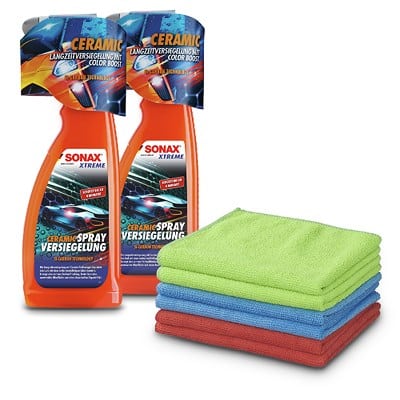 Häufig gestellte Fragen zu Sonax 2x 750 ml XTREME Ceramic Spray Versiegelung+ 6 Mikrofasertücher [Hersteller-Nr. 02574000]