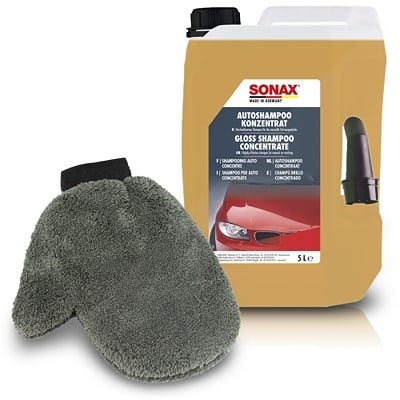 Strahlender Glanz für Ihr Fahrzeug: Das Sonax 5 L AutoShampoo Konzentrat + Wasch- und Polierhandschuh Set