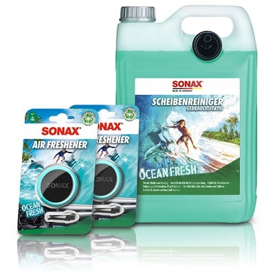 Klare Sicht und frischer Duft: Das Sonax 5 L ScheibenReiniger gf Ocean-fresh+2x Lufterfrischer Set für Ihr Fahrzeug