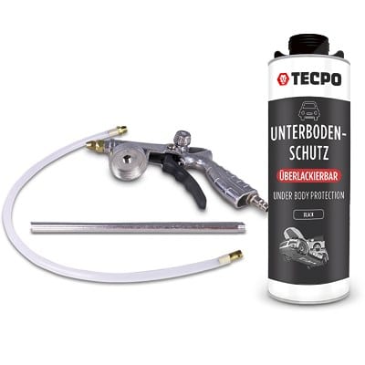 Maximale Fahrzeugkonservierung: Tecpo 1 L Unterbodenschutz Bitumen mit Druckluft-Sprühpistole