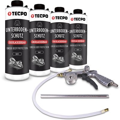 Umfassender Unterbodenschutz für maximale Fahrzeuglanglebigkeit: Tecpo 4x 1 L Bitumen-Set mit Sprühpistole